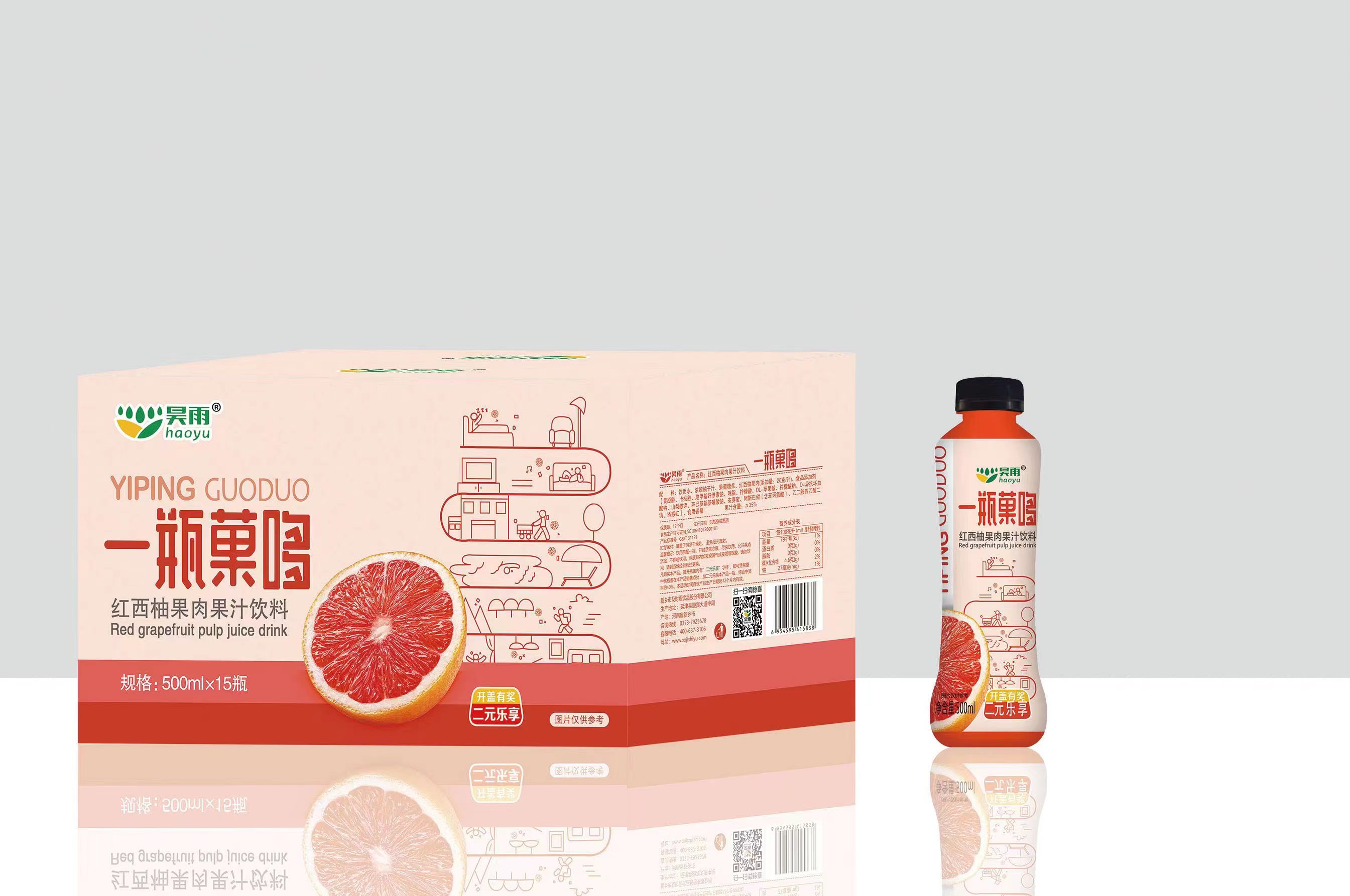 一瓶菓哆-红西柚果肉果汁饮料